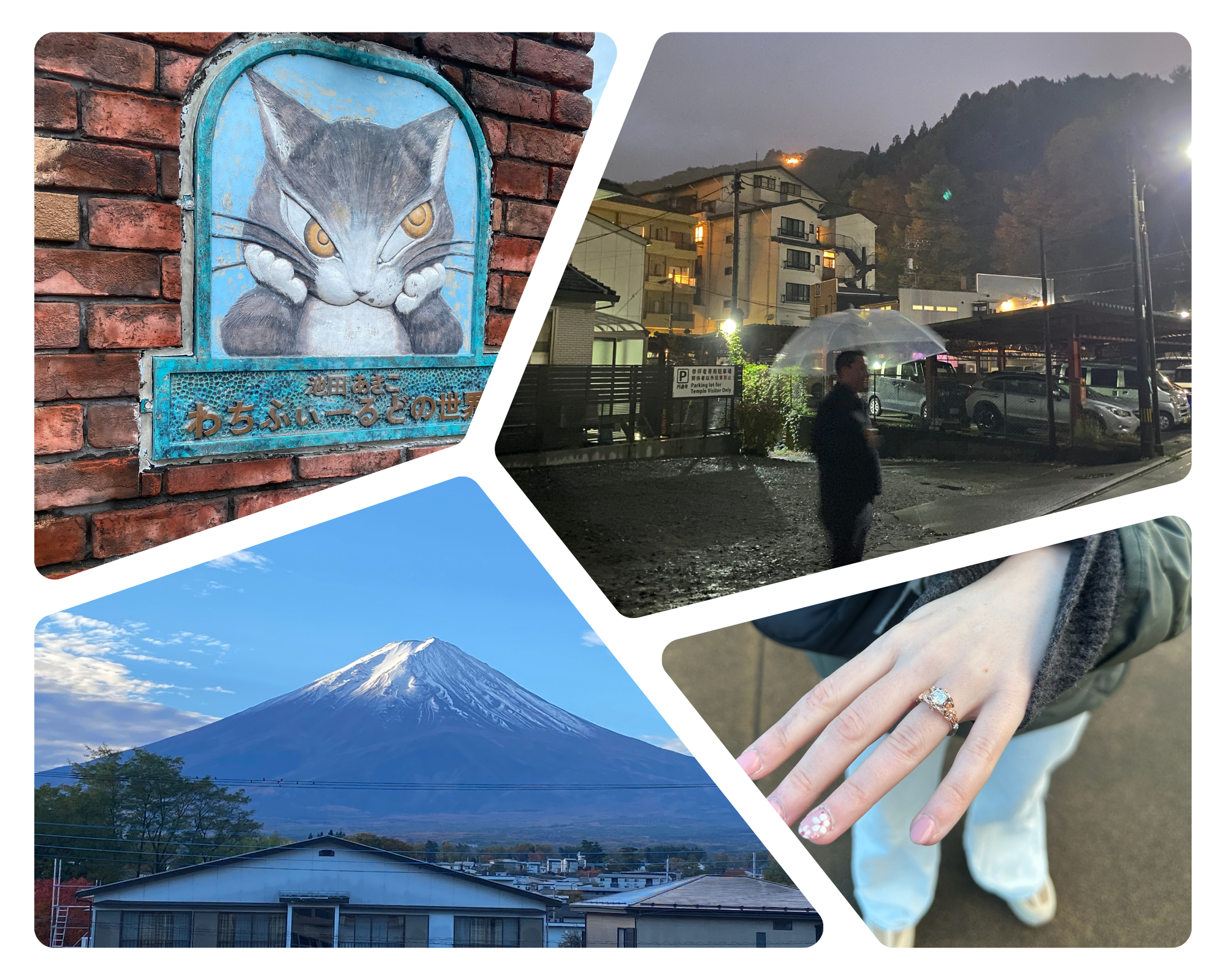 The next morning, our "luck" changed, I suppose - BECAUSE WE GOT ENGAGED! Joel woke me up at 6am and was like "Get up! Let's go see the sunrise!" We opened our window to see Mount Fuji clear as ever right outside, so we went onto the roof of the hotel to view it. Afterwards, we went to Yagizaki park and walked around the paths and wondered at the gorgeous lake and autumn leaves. Joel distracted me by pointing out a crane on the water, and then when I turned back around, he was on his knees with the ring. We both teared up and hugged and kissed and I was the happiest woman in the world! It was so perfect - just us at the park, in the quiet morning, in one of the most beautiful locations in the world. I couldn't have asked for anything different.